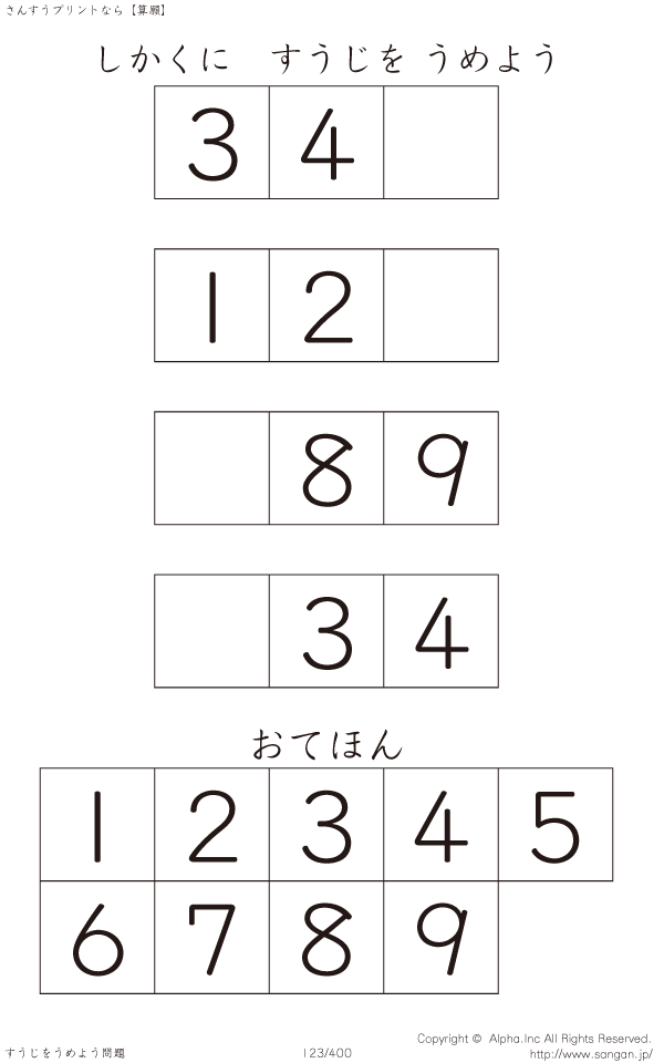 しかくにすうじをうめよう [問題]123/400