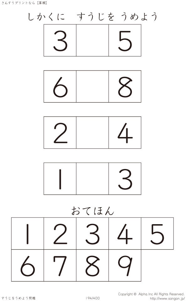 しかくにすうじをうめよう [問題]194/400