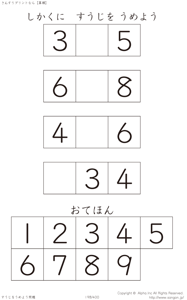 しかくにすうじをうめよう [問題]198/400