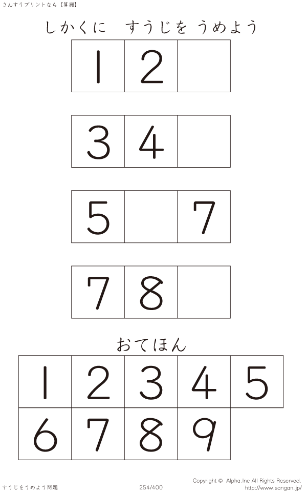 しかくにすうじをうめよう [問題]254/400