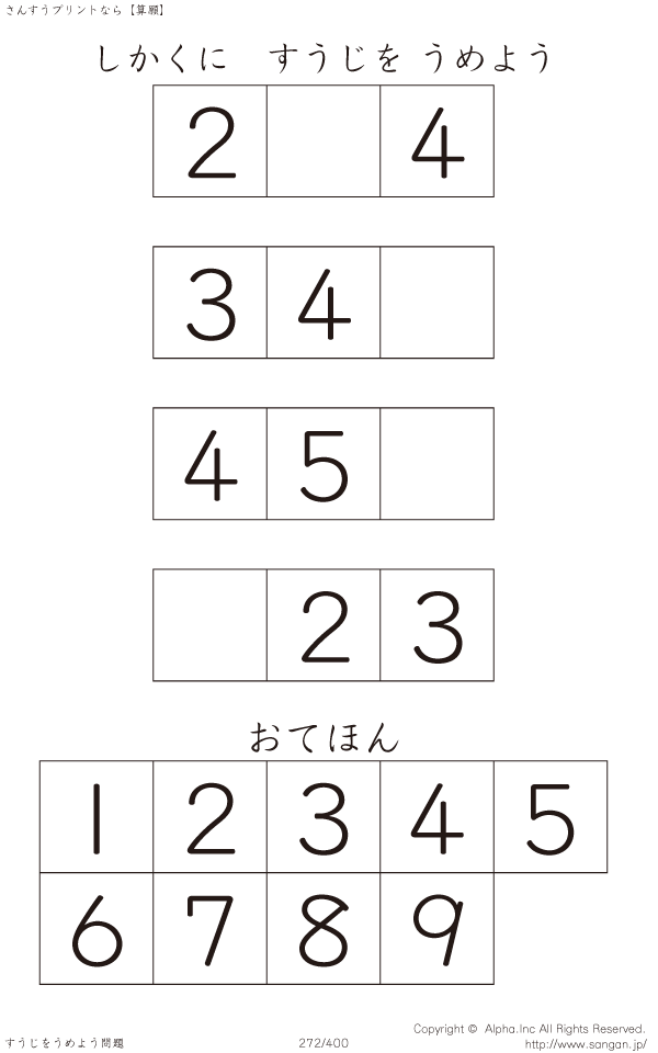 しかくにすうじをうめよう [問題]272/400
