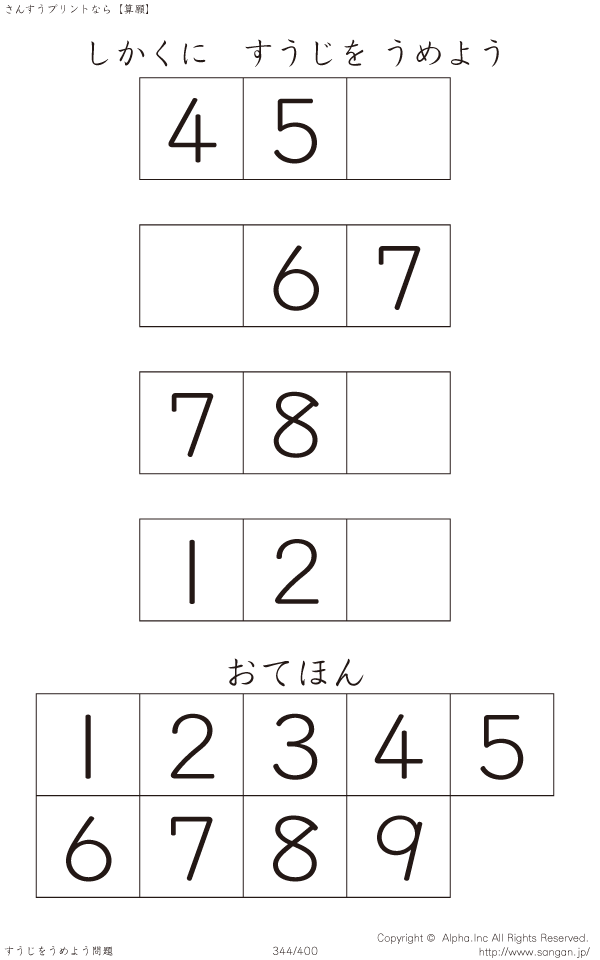 しかくにすうじをうめよう [問題]344/400