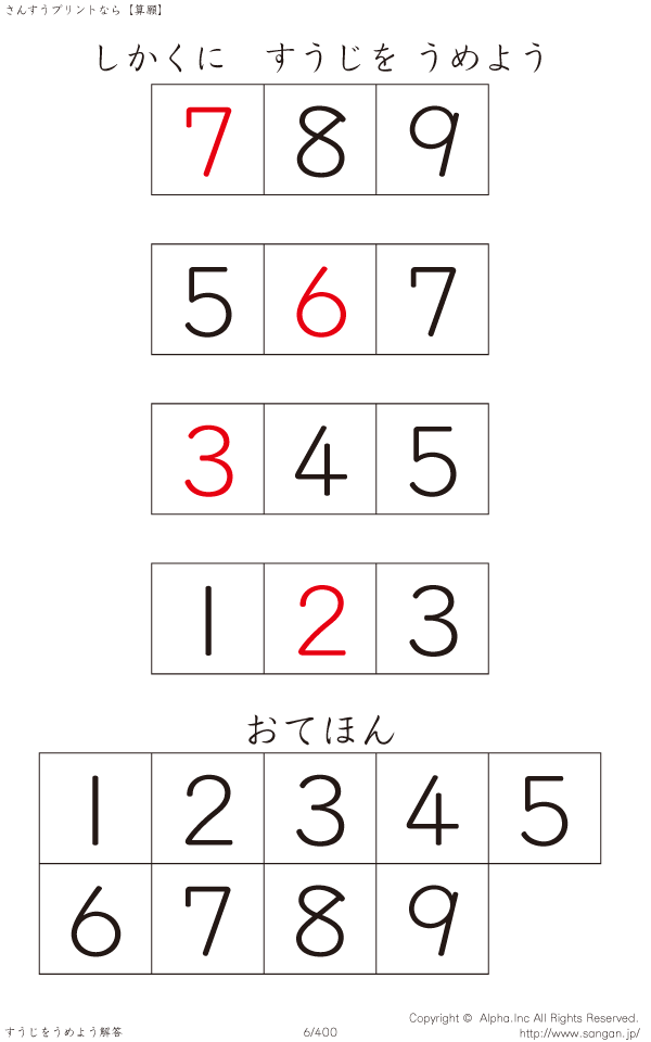 上記のボタンから「しかくにすうじをうめよう」の算数数学ドリル・計算ドリル(PDFプリント)がダウンロードできます。個人利用は無料です(家庭以外での配布は有料です)。