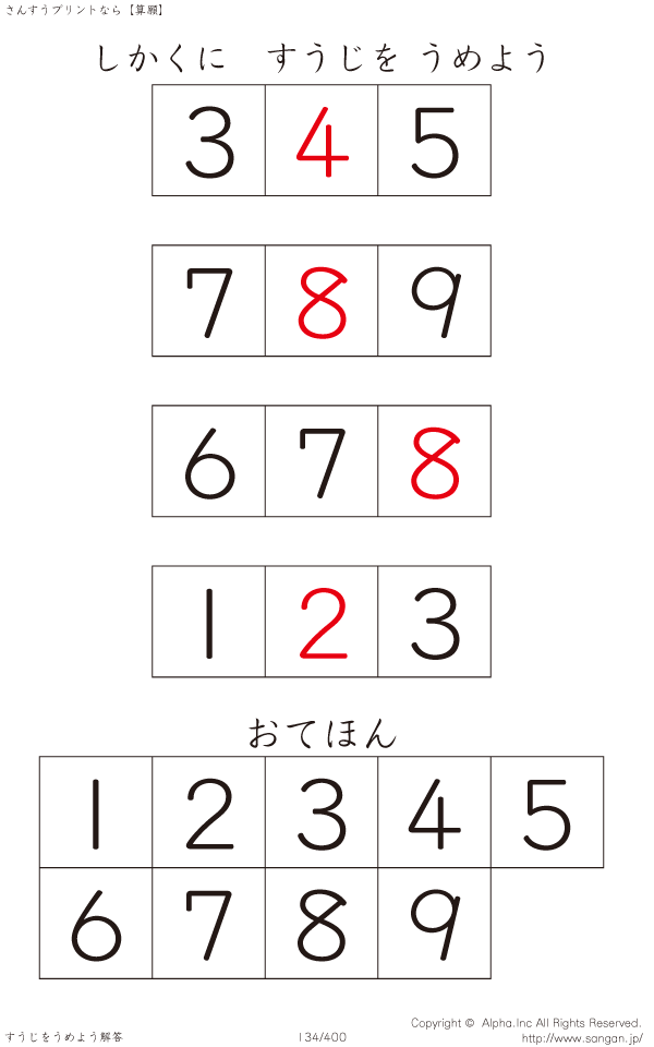 しかくにすうじをうめよう [解答]134/400