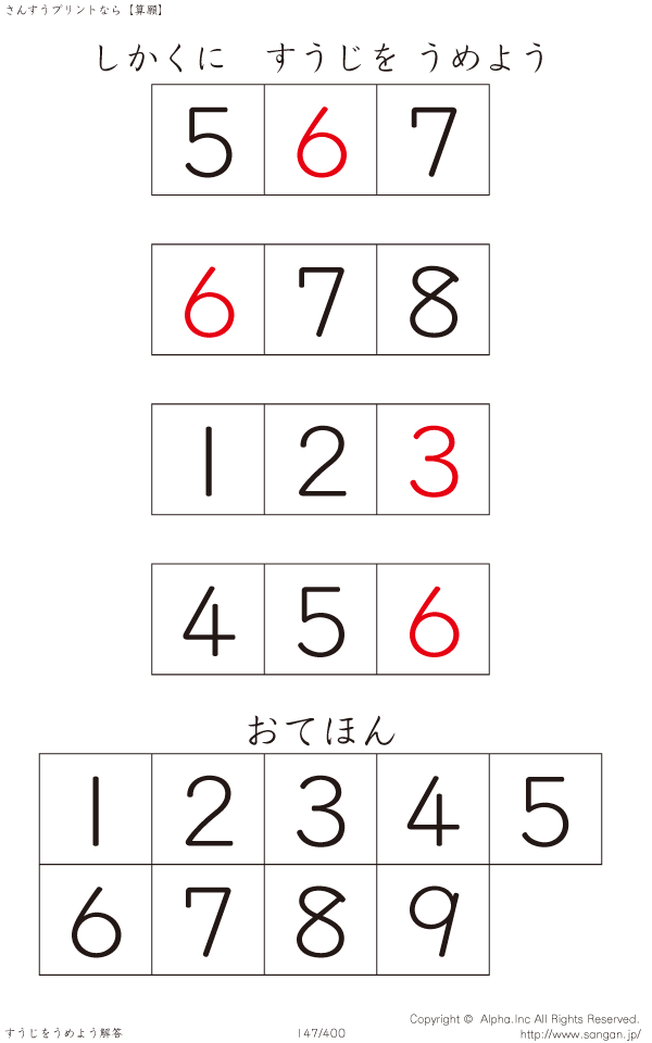 しかくにすうじをうめよう [解答]147/400