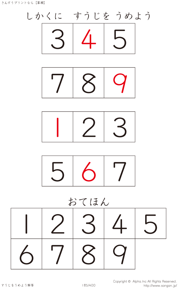 しかくにすうじをうめよう [解答]185/400