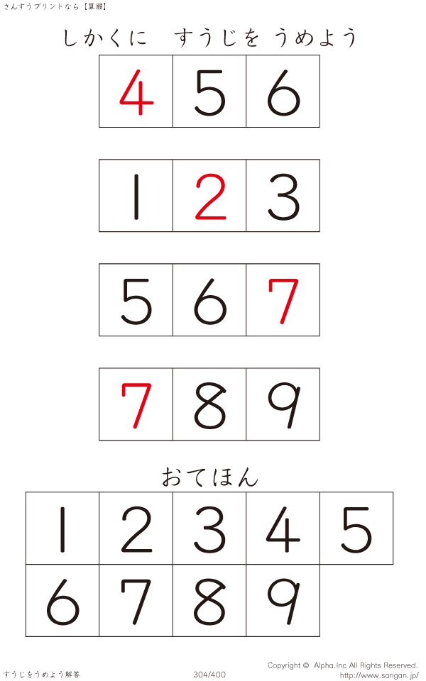 上記のボタンから「しかくにすうじをうめよう」の算数数学ドリル・計算ドリル(PDFプリント)がダウンロードできます。個人利用は無料です(家庭以外での配布は有料です)。