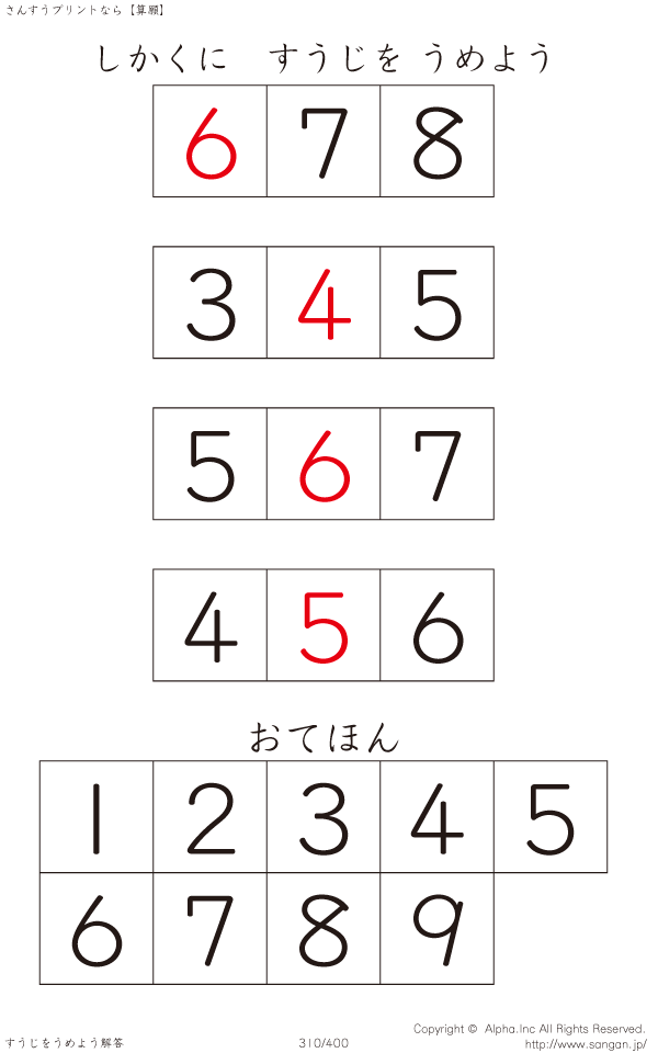 上記のボタンから「しかくにすうじをうめよう」の算数数学ドリル・計算ドリル(PDFプリント)がダウンロードできます。個人利用は無料です(家庭以外での配布は有料です)。