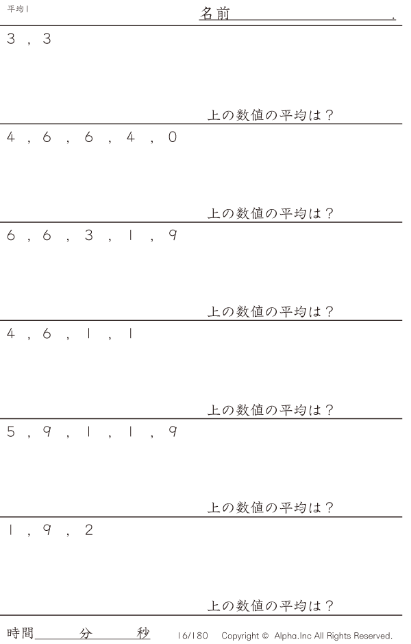 上記のボタンから「平均1割り切れる」の算数数学ドリル・計算ドリル(PDFプリント)がダウンロードできます。個人利用は無料です(家庭以外での配布は有料です)。