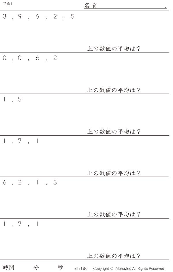 上記のボタンから「平均1割り切れる」の算数数学ドリル・計算ドリル(PDFプリント)がダウンロードできます。個人利用は無料です(家庭以外での配布は有料です)。