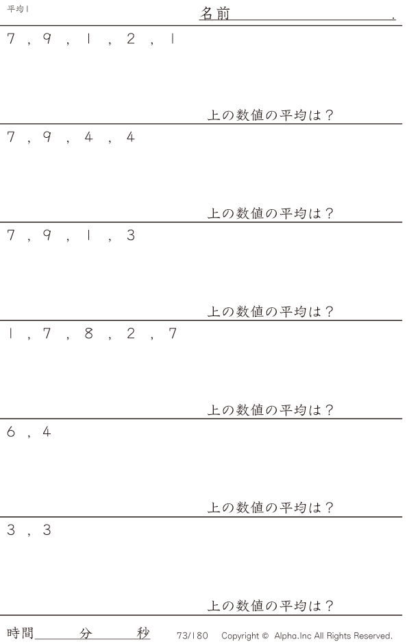 上記のボタンから「平均1割り切れる」の算数数学ドリル・計算ドリル(PDFプリント)がダウンロードできます。個人利用は無料です(家庭以外での配布は有料です)。
