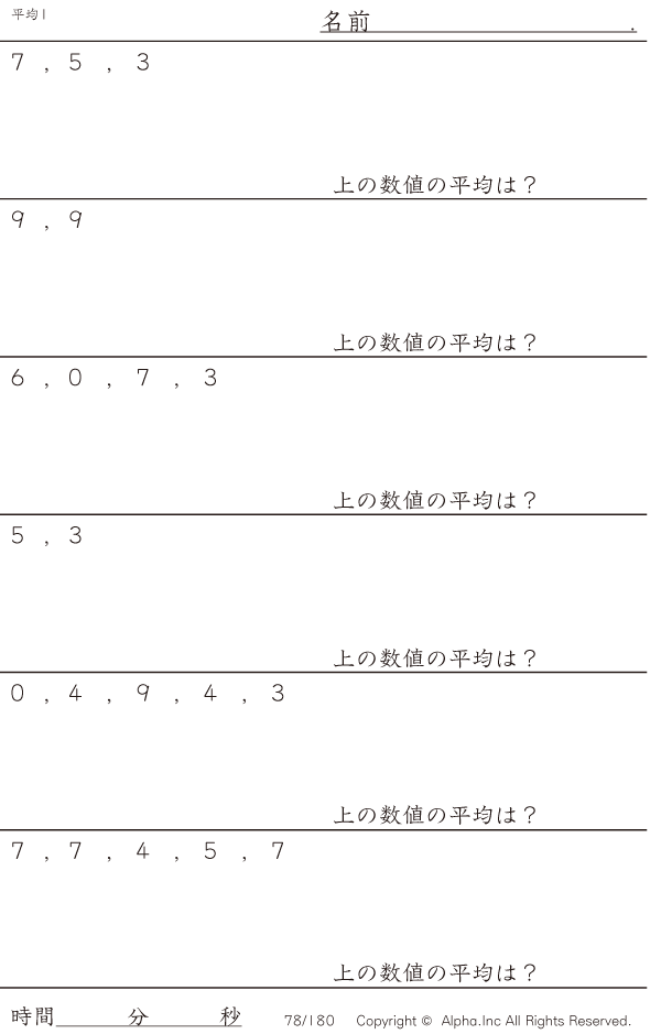 上記のボタンから「平均1割り切れる」の算数数学ドリル・計算ドリル(PDFプリント)がダウンロードできます。個人利用は無料です(家庭以外での配布は有料です)。