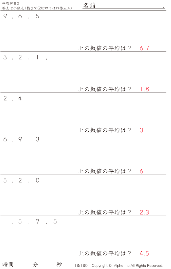 上記のボタンから「平均2割り切れない/9まで」の算数数学ドリル・計算ドリル(PDFプリント)がダウンロードできます。個人利用は無料です(家庭以外での配布は有料です)。