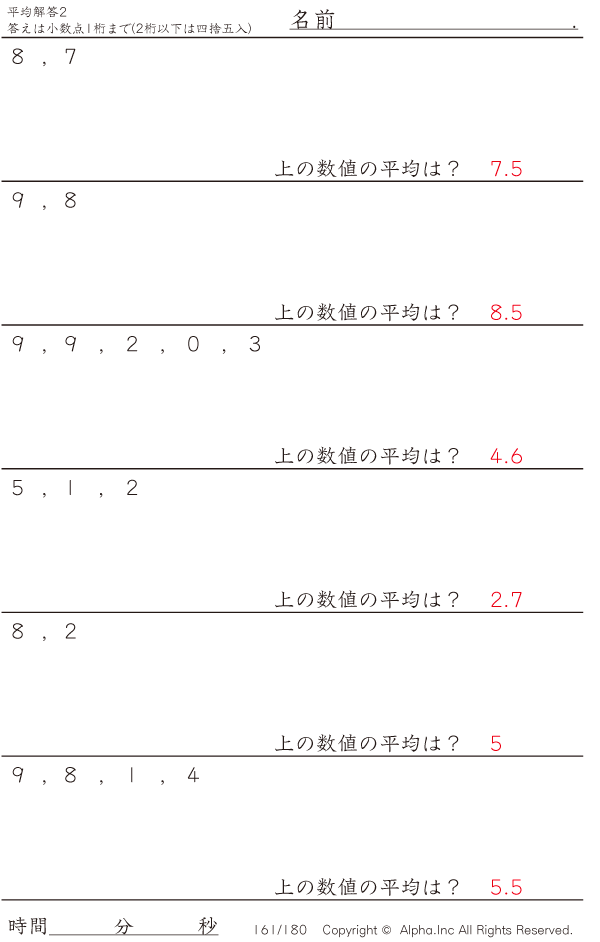 上記のボタンから「平均2割り切れない/9まで」の算数数学ドリル・計算ドリル(PDFプリント)がダウンロードできます。個人利用は無料です(家庭以外での配布は有料です)。