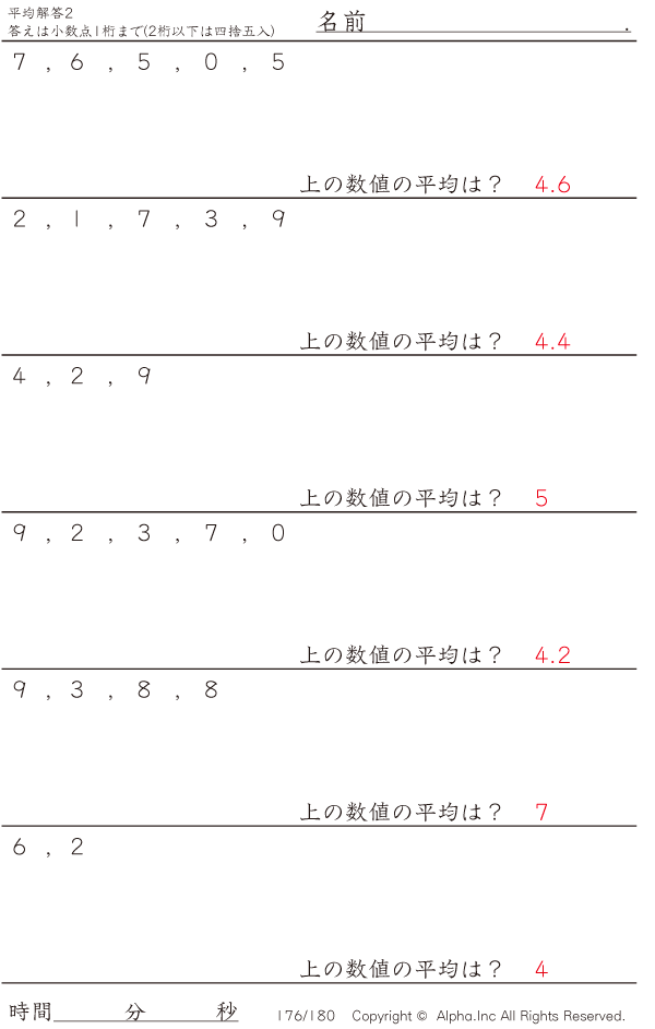 上記のボタンから「平均2割り切れない/9まで」の算数数学ドリル・計算ドリル(PDFプリント)がダウンロードできます。個人利用は無料です(家庭以外での配布は有料です)。