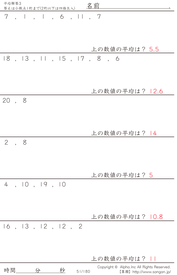 上記のボタンから「平均3割り切れない/20まで」の算数数学ドリル・計算ドリル(PDFプリント)がダウンロードできます。個人利用は無料です(家庭以外での配布は有料です)。