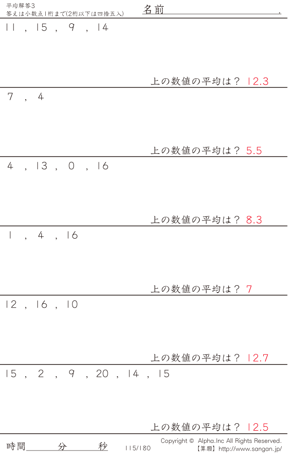 上記のボタンから「平均3割り切れない/20まで」の算数数学ドリル・計算ドリル(PDFプリント)がダウンロードできます。個人利用は無料です(家庭以外での配布は有料です)。