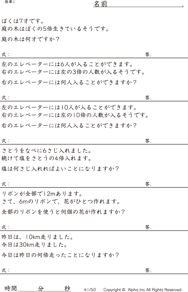 倍率1(整数で解答) [問題]041/050