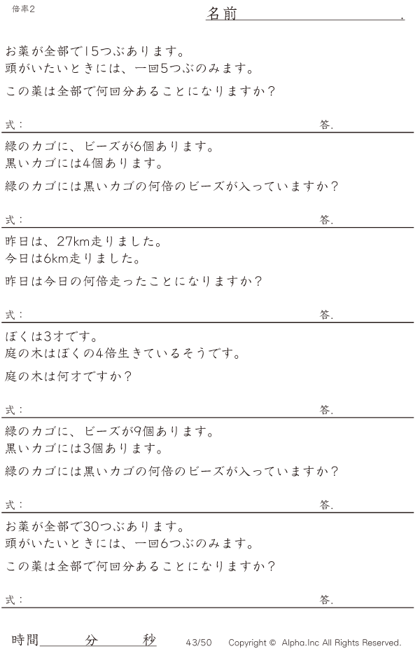 - 倍率の文章題問題集