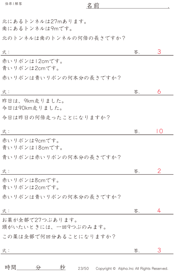 上記のボタンから「倍率2(倍率0.5単位)」の算数数学ドリル・計算ドリル(PDFプリント)がダウンロードできます。個人利用は無料です(家庭以外での配布は有料です)。