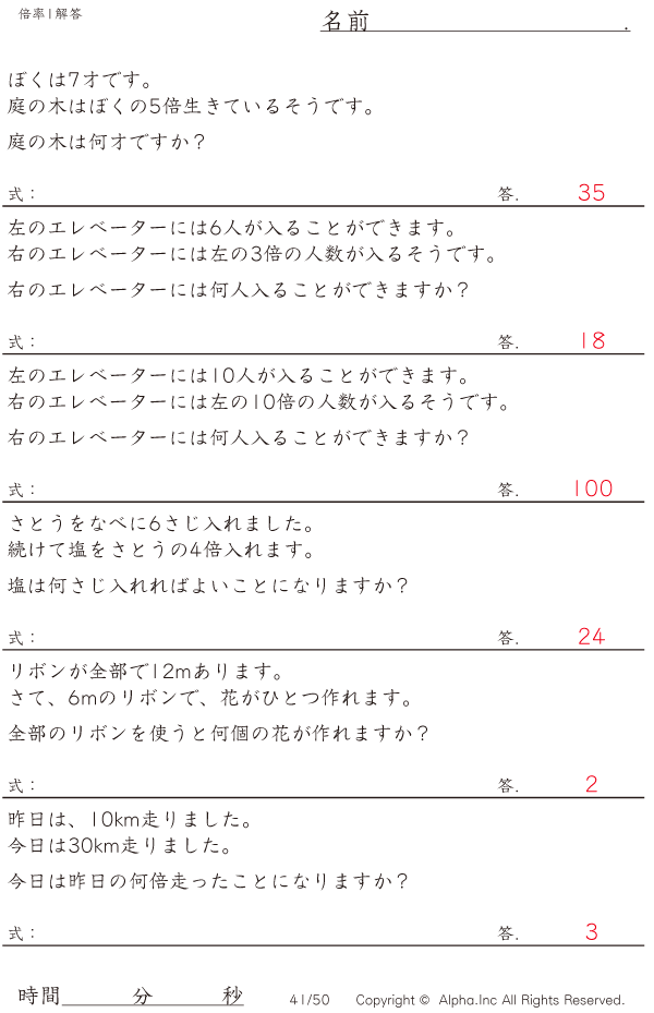 上記のボタンから「倍率2(倍率0.5単位)」の算数数学ドリル・計算ドリル(PDFプリント)がダウンロードできます。個人利用は無料です(家庭以外での配布は有料です)。
