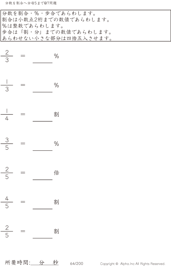 分数を割合へ 分母5まで@7 [問題]064/200