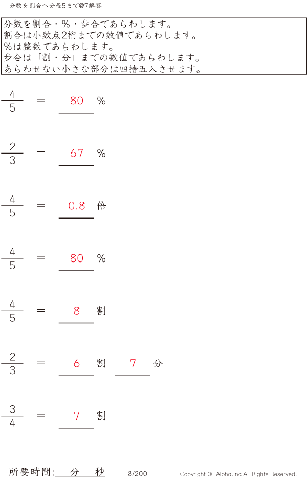 分数を割合へ 分母5まで@7 [解答]008/200