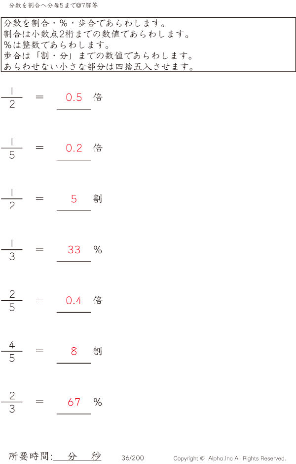 分数を割合へ 分母5まで@7の問題解答ガイド
