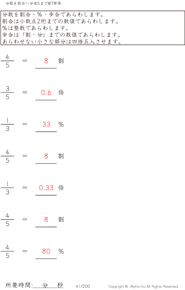 分数を割合へ 分母5まで@7 [解答]041/200