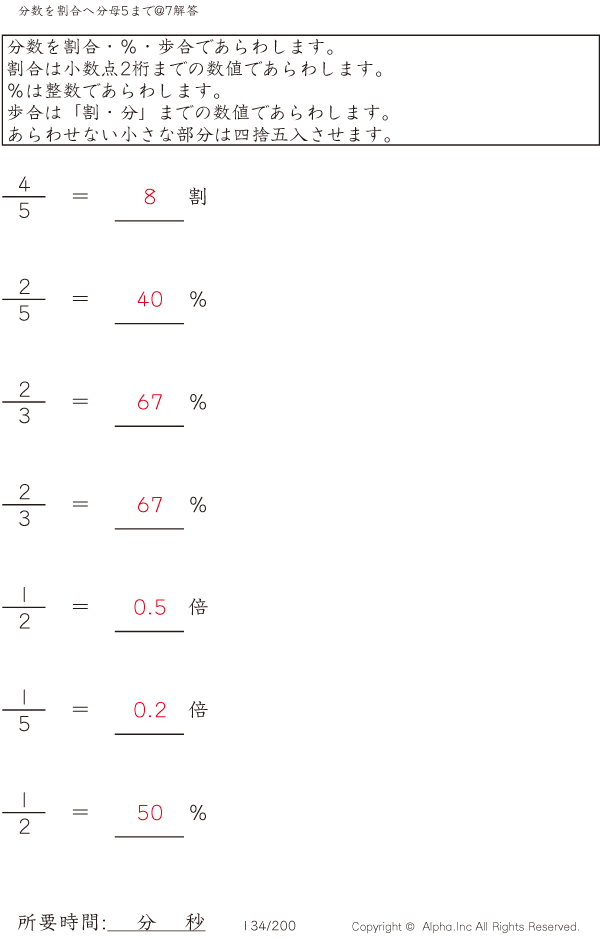 分数を割合へ 分母5まで@7の問題解答ガイド