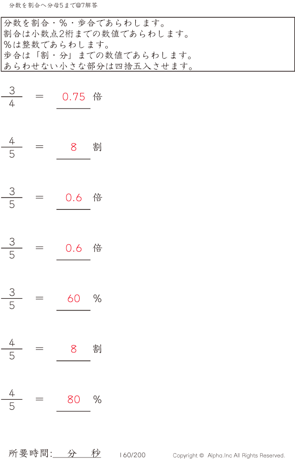 分数を割合へ 分母5まで@7の問題解答ガイド
