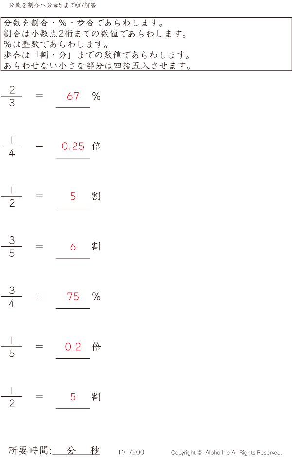 分数を割合へ 分母5まで@7の問題解答ガイド