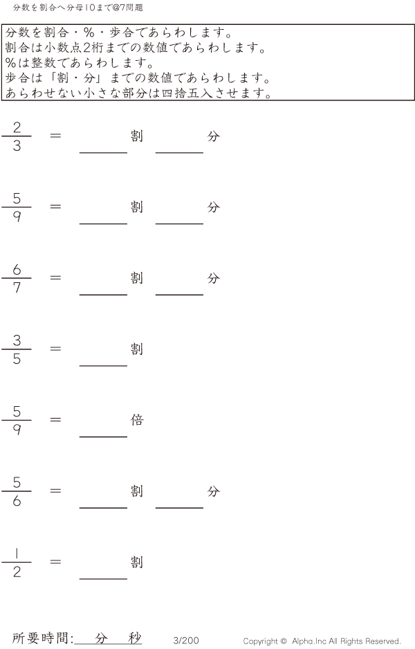 分数を割合へ 分母10まで@7の問題解答ガイド