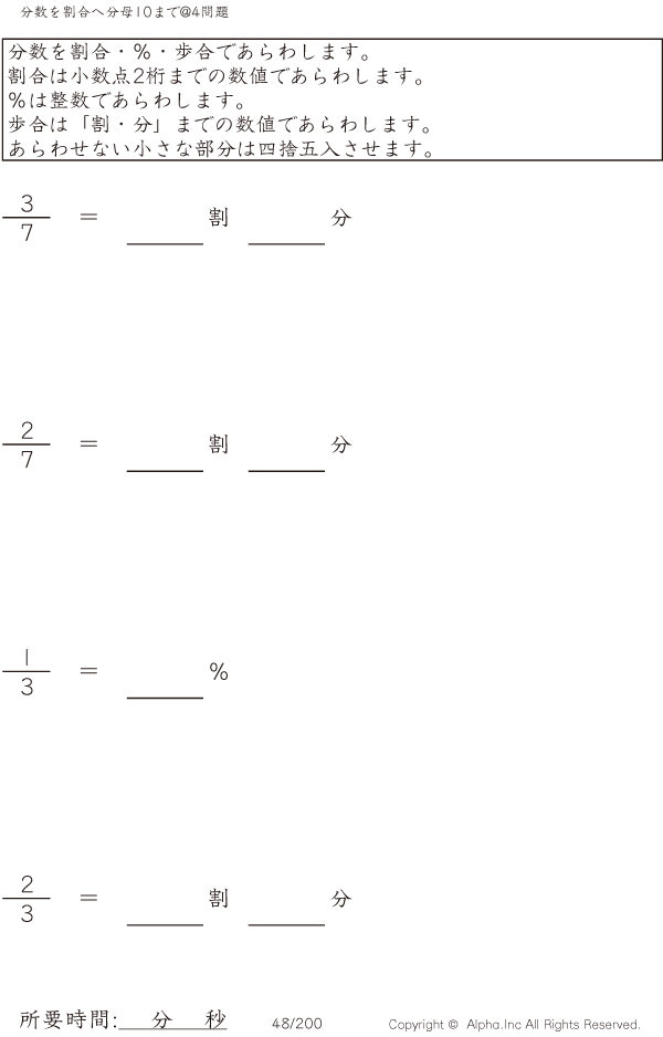 分数を割合へ 分母10まで@4の問題解答ガイド