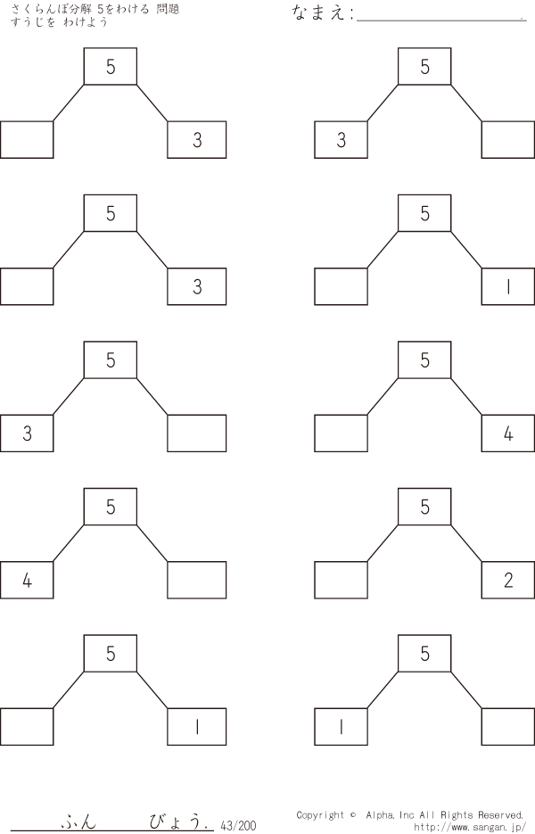 さくらんぼ分解 すうじをわけよう 5をわける [問題]043/200