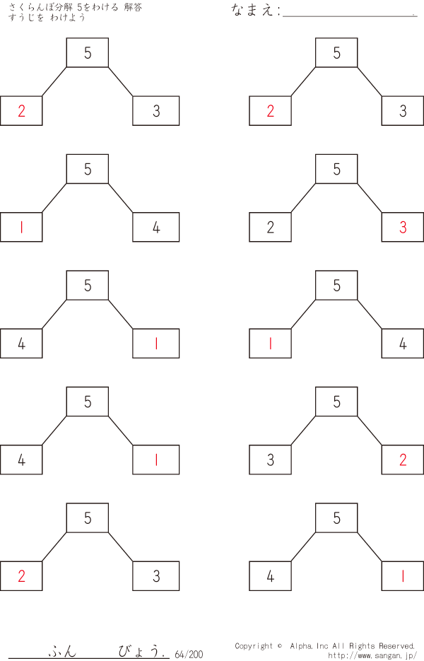 さくらんぼ分解 すうじをわけよう 5をわける [解答]064/200