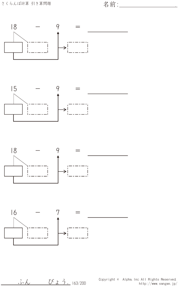 さくらんぼ計算 引き算 [問題]163/200