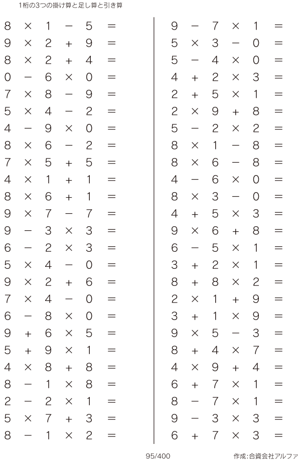 1桁の3つの掛け算と足し算と引き算 [問題]095/400