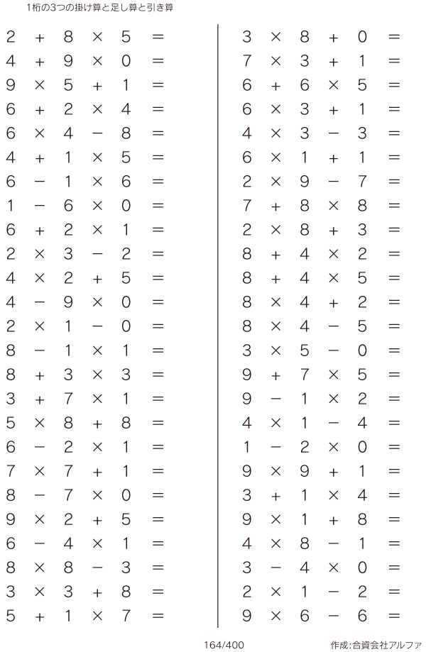 1桁の3つの掛け算と足し算と引き算 [問題]164/400
