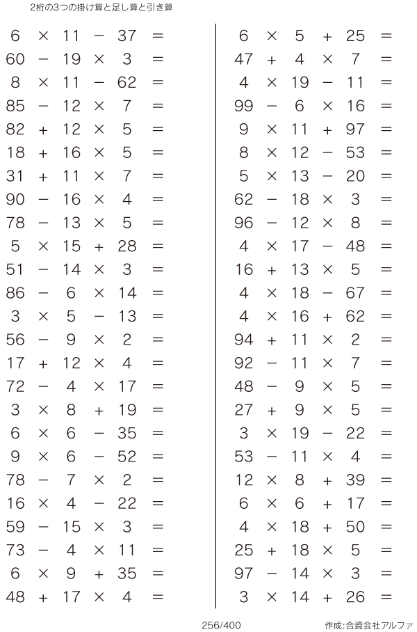 2桁の3つの掛け算と足し算と引き算 [問題]256/400