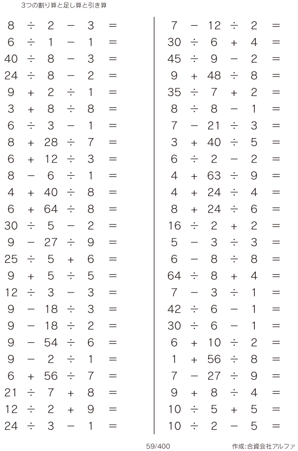 3つの割り算と足し算と引き算 [問題]059/400