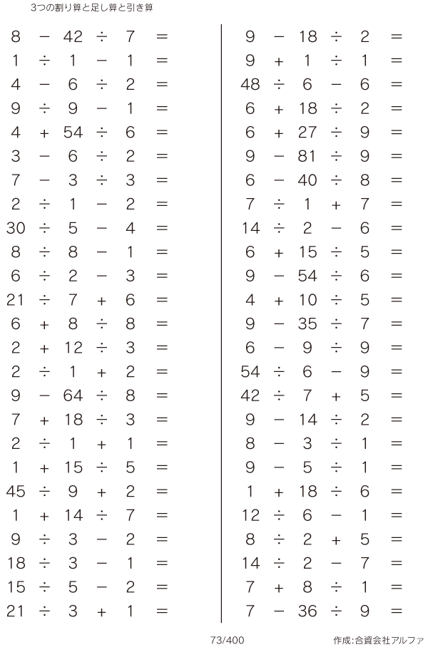 3つの割り算と足し算と引き算 [問題]073/400