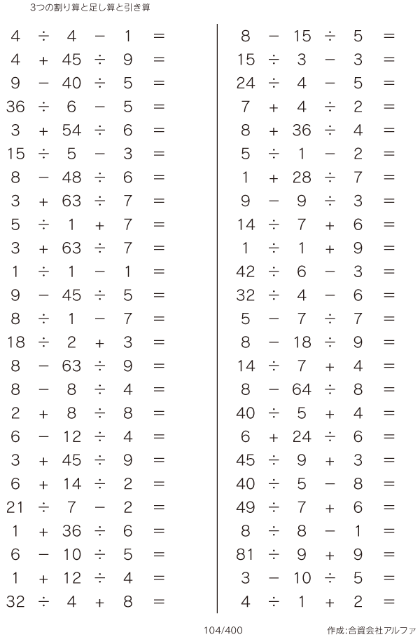 3つの割り算と足し算と引き算 [問題]104/400
