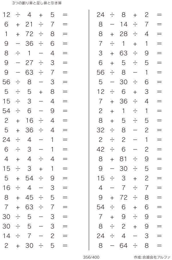 3つの割り算と足し算と引き算 [問題]356/400