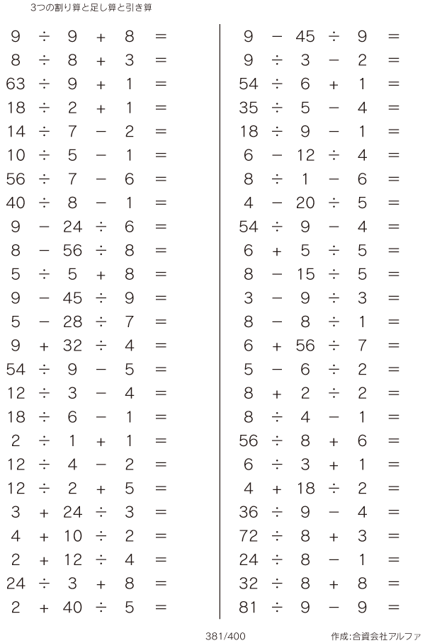 3つの割り算と足し算と引き算 [問題]381/400
