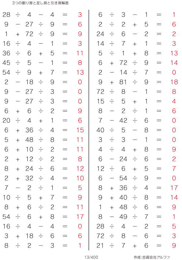3つの割り算と足し算と引き算 [解答]013/400