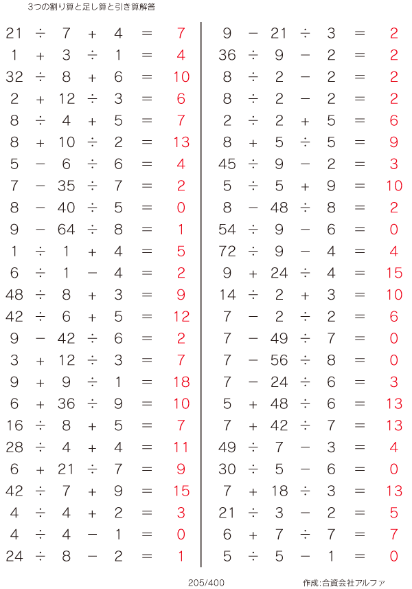 3つの割り算と足し算と引き算 [解答]205/400