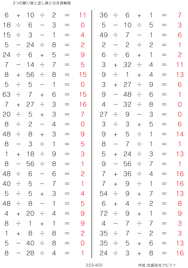 3つの割り算と足し算と引き算 [解答]223/400