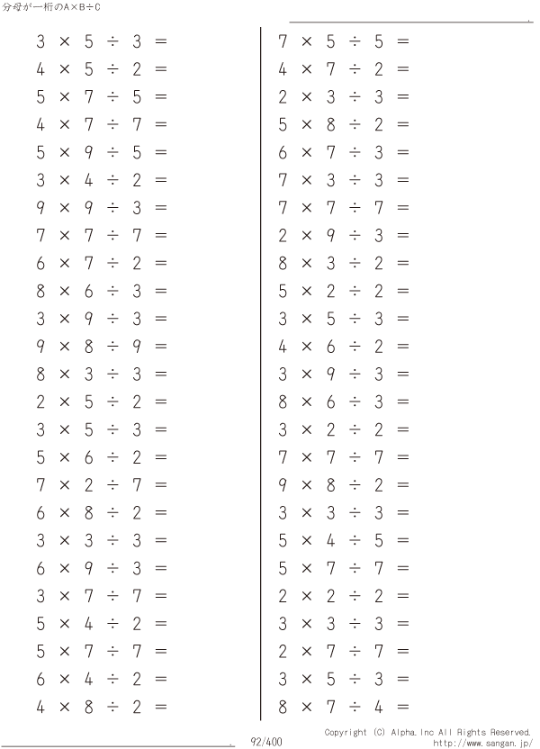 分母が一桁のA×B÷C [問題]092/400