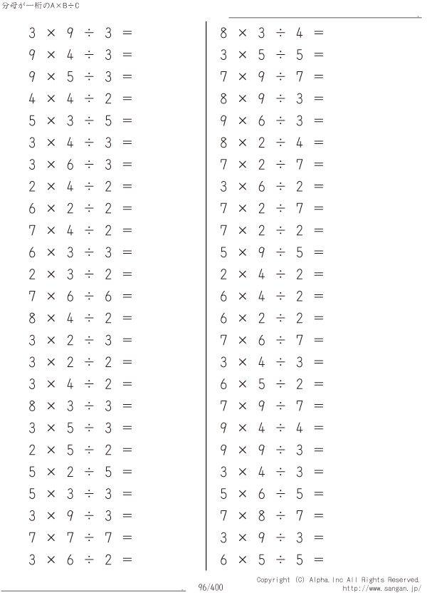 分母が一桁のA×B÷C [問題]096/400